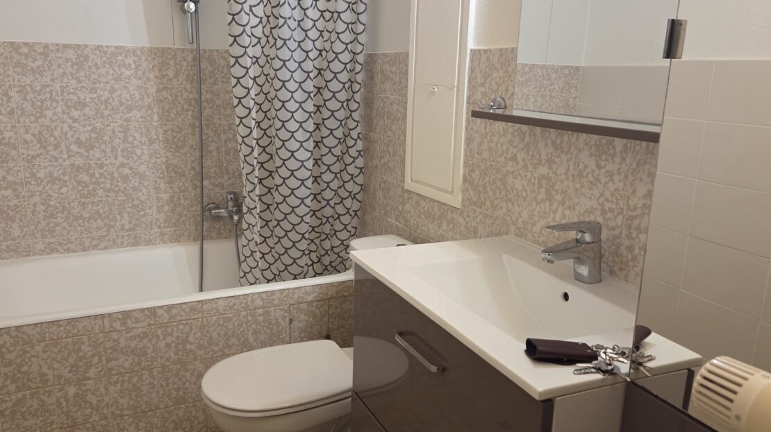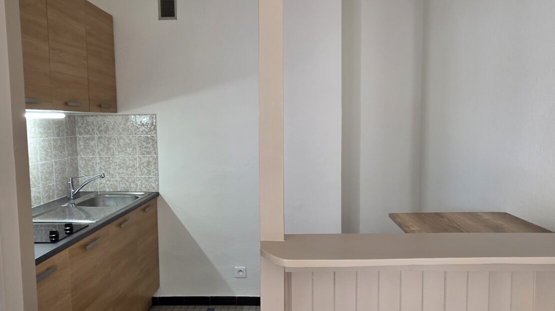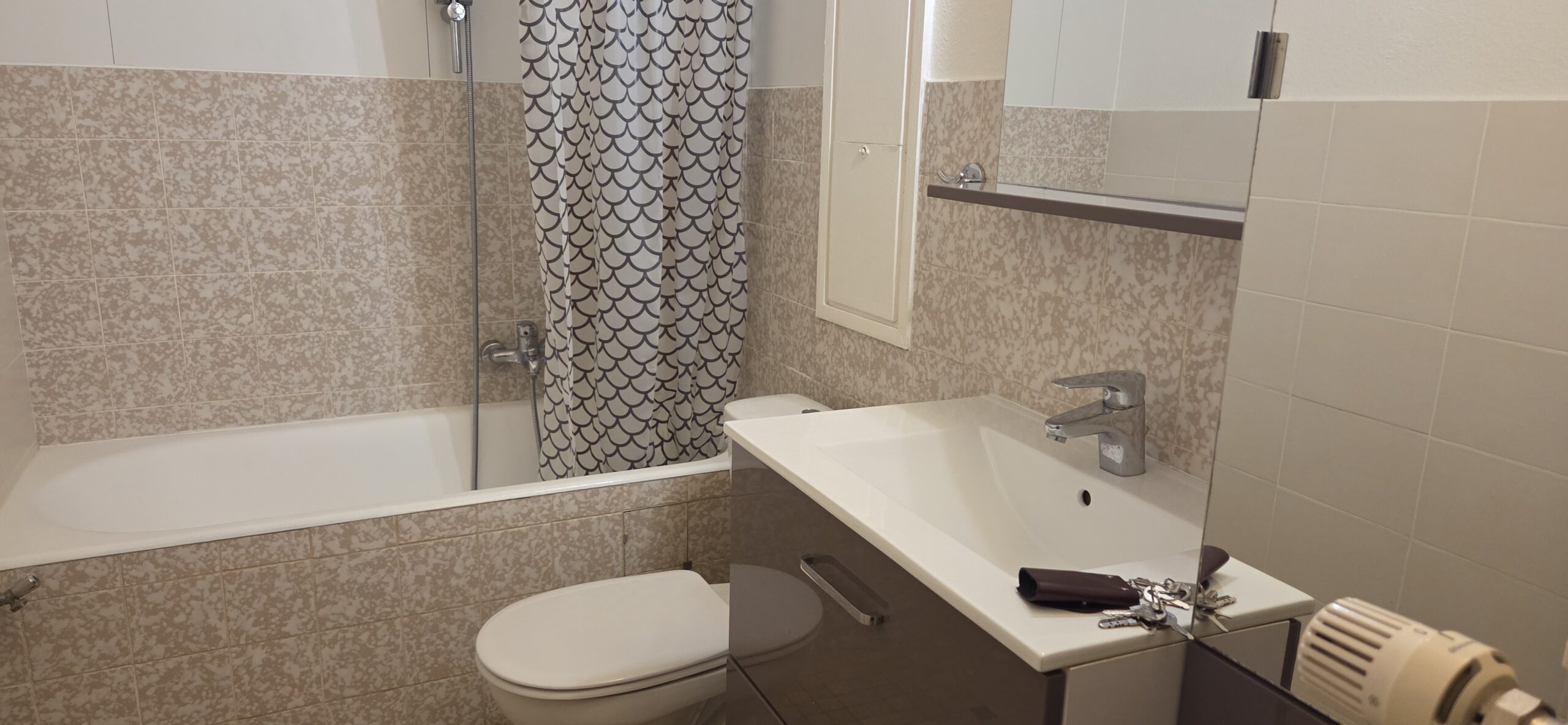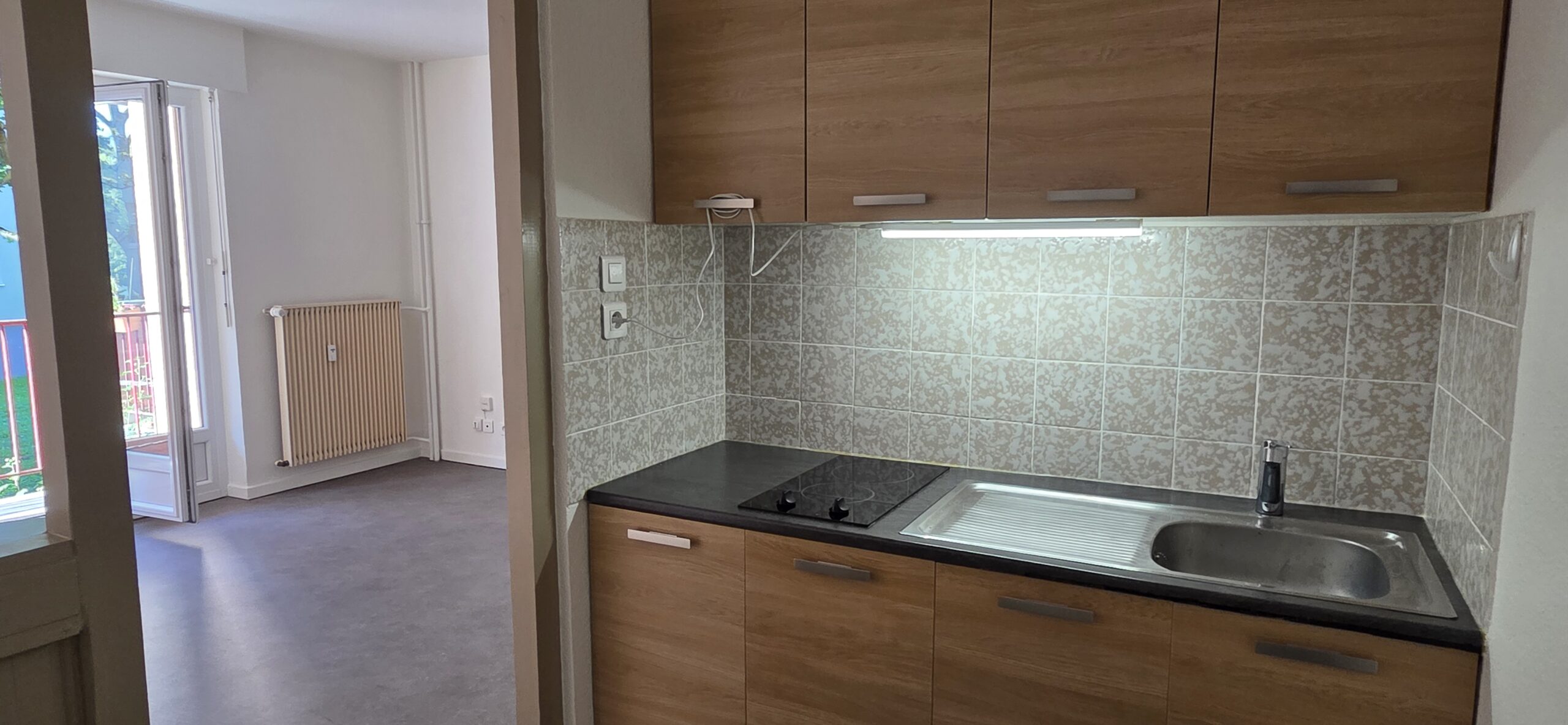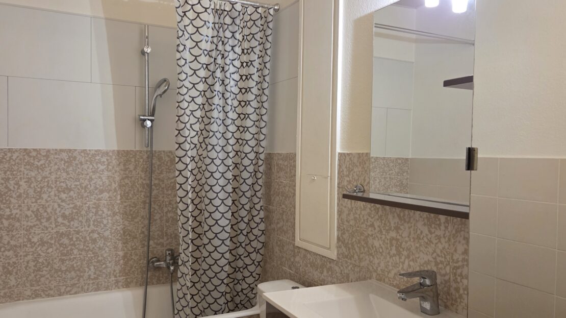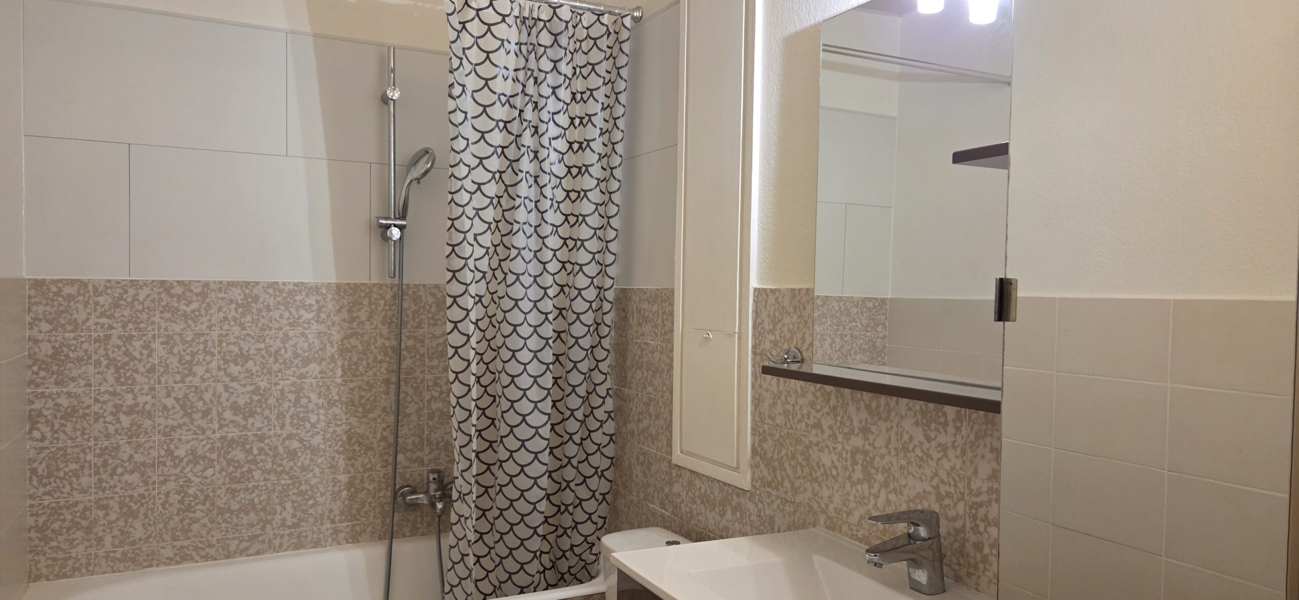Dans petite résidence au calme, ce grand studio de 33 m² se compose d’une belle pièce de vie lumineuse avec accès sur balcon, une cuisine avec plaque de cuisson et placards, une salle de bain meublée avec baignoire