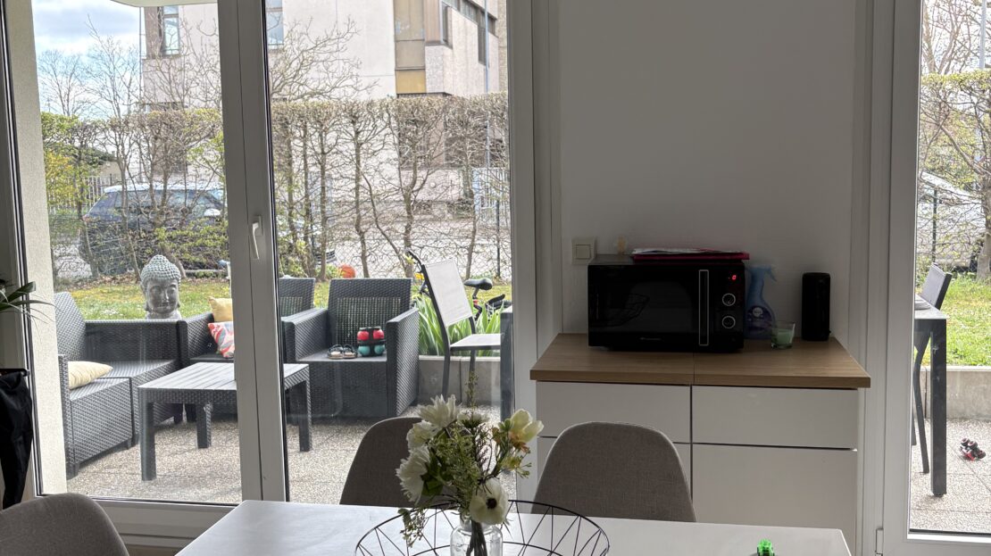 Beau 3 pièces en rez de jardin de 56,63 m² dans résidence comprenant une cuisine équipée ouverte sur un grand séjour, une terrasse jardin, deux chambres, une SDB avec baignoire et WC séparé.