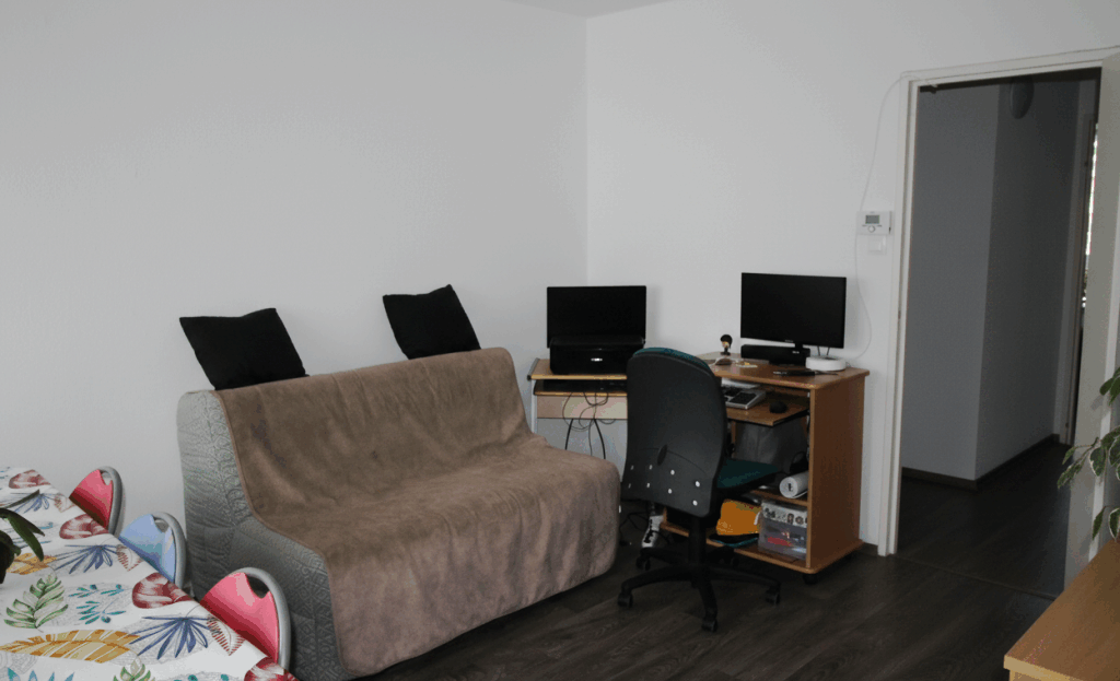 – 1 bureau attenant au salon pouvant faire office d’une petite chambre,