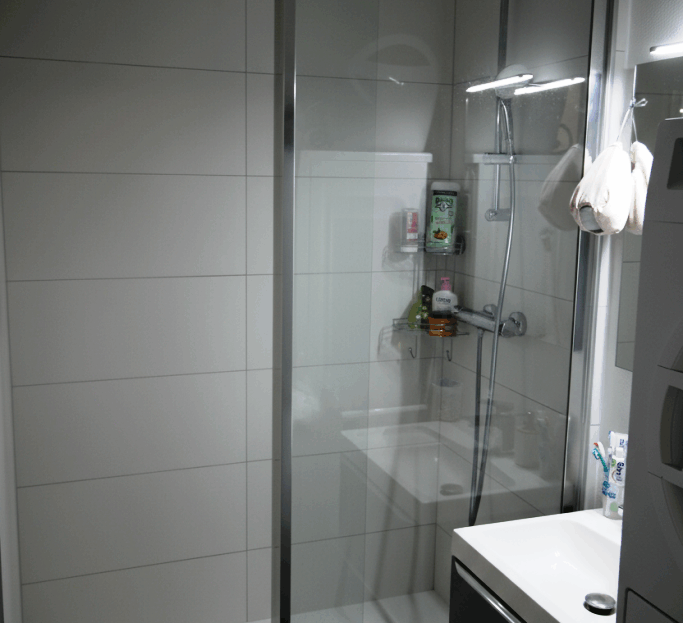 – 1 salle de bain équipée d’une cabine de douche et d’un meuble vasque,