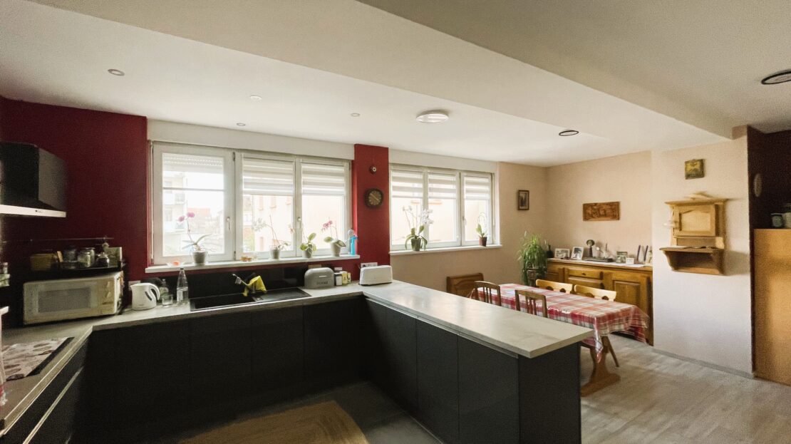 – une belle pièce à vie avec sa grande cuisine contemporaine toute équipée donnant sur le coin repas et le salon